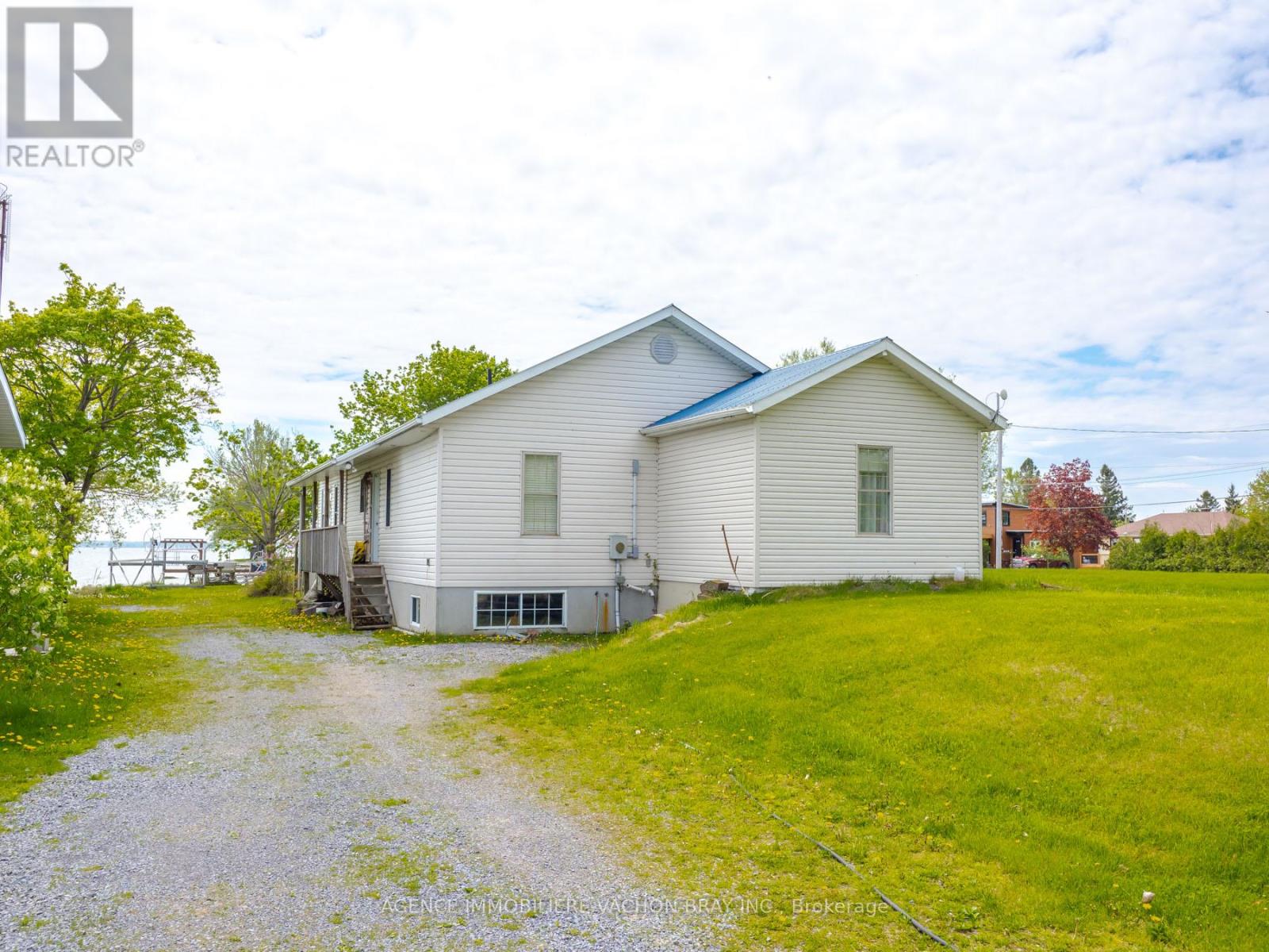 Welcome to this waterfront gem located at 6240, 167th Avenue ! This beautiful bungalow built in 2007 has a breath taking view of the majestic Lake St-Francis & Adirondack Mountains. Open concept kitchen-dining and features large and bright living room that overlooks the water. A total of 3 good sized bedrooms, the primary bedroom boasts ensuite and walk-in-closet. Main floor laundry room, gas stove in the living room, hardwood and ceramic floors throughout. Double detached heated garage 32'x24' (Man cave) with large work area, office space, plus upstairs loft. Metal roof on the main house and the garage. If you are searching for a retreat or all year home, then this bungalow is the perfect choice for a truly magical waterfront living experience. Just minutes from the Quebec border. (id:61998)